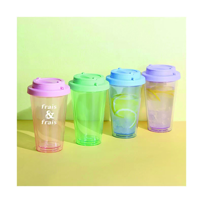 【360度フルカラー印刷可能】フラップ付き二重構造クリアタンブラー