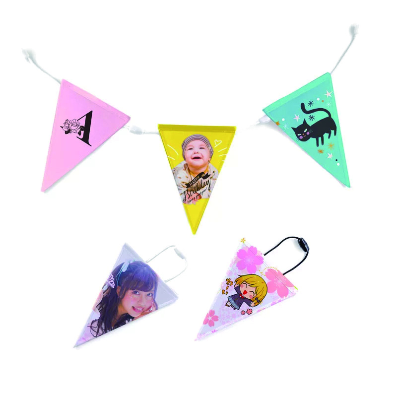 フルカラー印刷で個性的なガーランドを作成できます。さらに、複数のガーランドを連結して